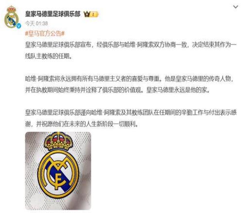 太突然!皇马重磅官宣阿隆索下课!执教仅7个月黯然离开胜率70%